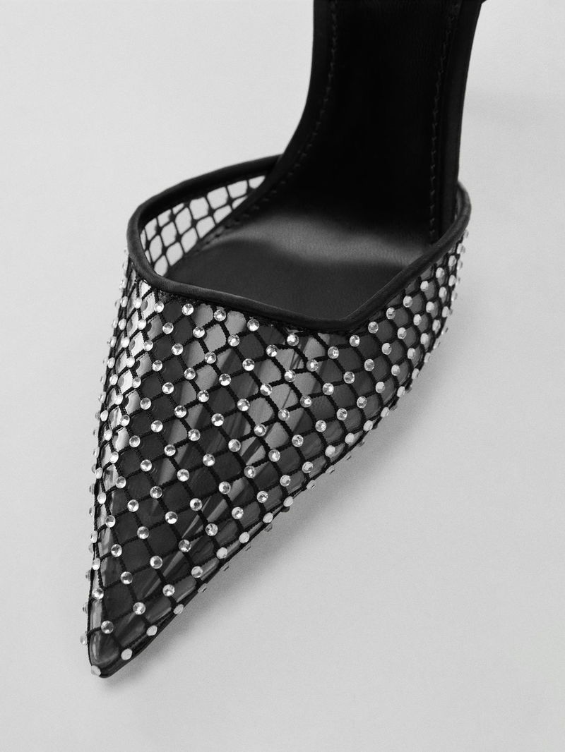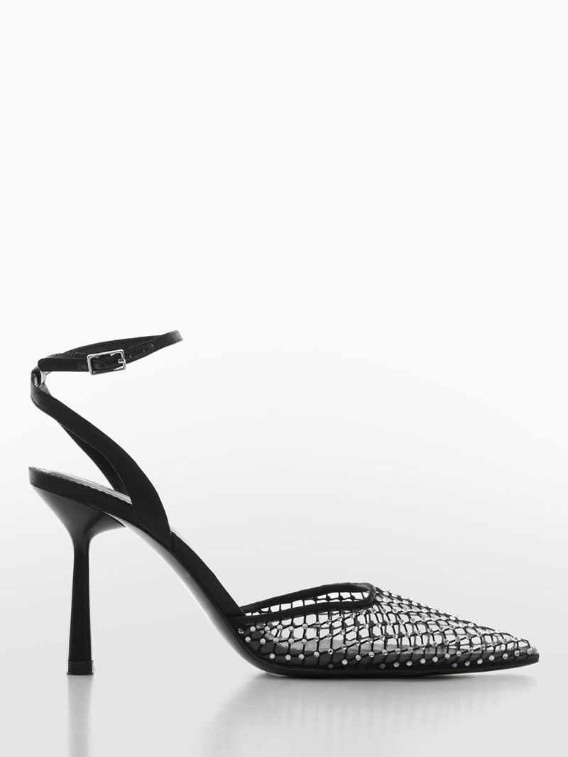 Bringing a sleek edge to your footwear collection, this pair of studded court shoes from Mango is made with durable uppers for seasons of wear. Set on a stiletto heel and designed with a wraparound ankle tie, they are neatly pointed at the toe for a timeless finish.