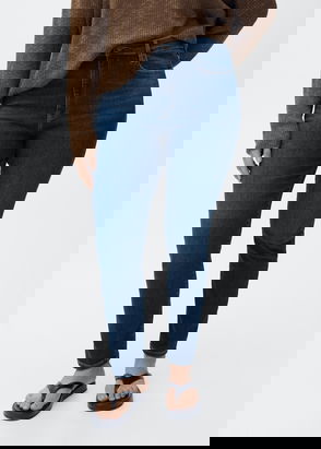Medium waist, Skinny fit, Frayed finish, Cropped design, Loops on the waist, Five pockets, Fabric with cotton, Zip and one button fastening.