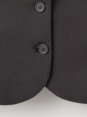 Lapel-collar, Long sleeve, Decorative pocket on the front section, One button fastening, Light fabric, Cropped design, Inner lining.