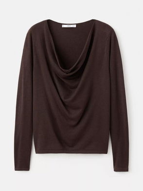 Cuiner Asymmetric Neckline Jumper, Dark Brown