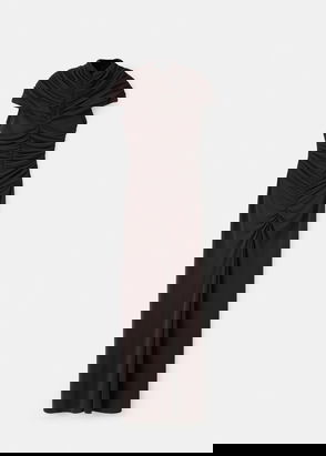 Evasé design, Striped design, Long design, Crew neck, Thin straps, Back neckline, Elastic gathered section.