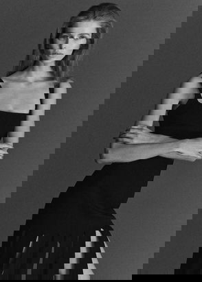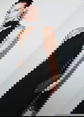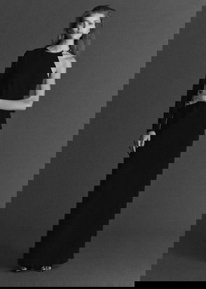 Midi design, Rounded neck, Wide straps, Elastic, Sleeveless, Tailored design, Side slit.