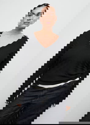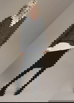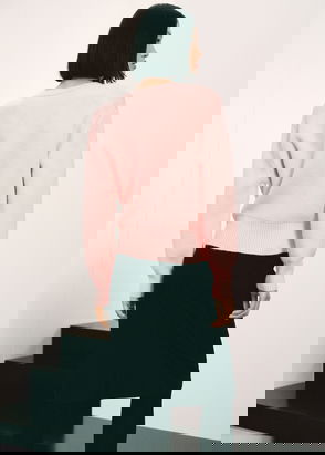 Thick knitted fabric, Cable knit, Straight design, Turtleneck, Cut-out, Puffed sleeves.