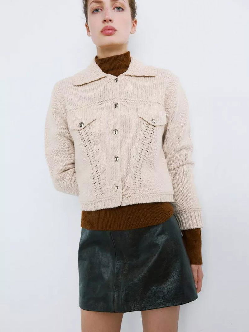 Cynthia Chunky Knit Jacket, Pastel Brown