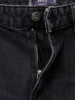 Standard design, Medium waist, Tapered fit: wide cut at the top that narrows from the knee to the ankle, Straight design, 100% Cotton, Zip and one button fastening, Five pockets, Decorative rips detail.