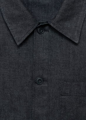 100% Cotton, Straight design, Adjustable waist tie, Loops, Classic collar, Two patch pockets on the chest, Button fastening on the front section, Long sleeve with buttoned cuffs.
