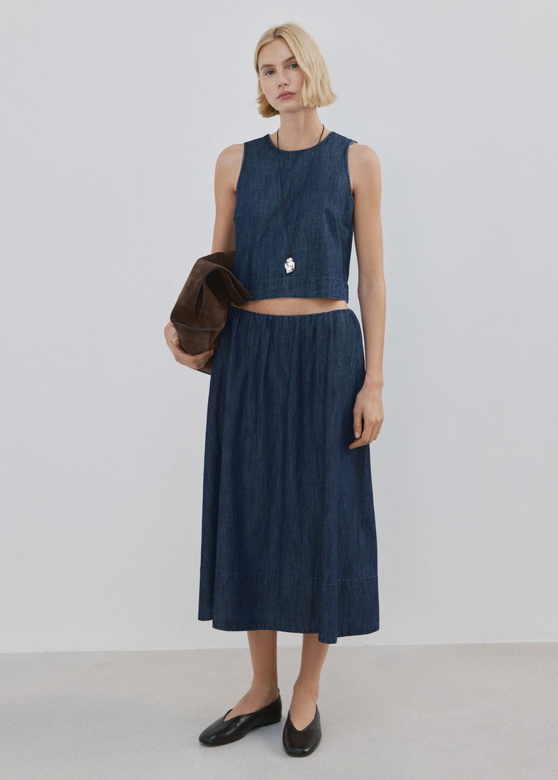Denim Skirt With Stitched Hem