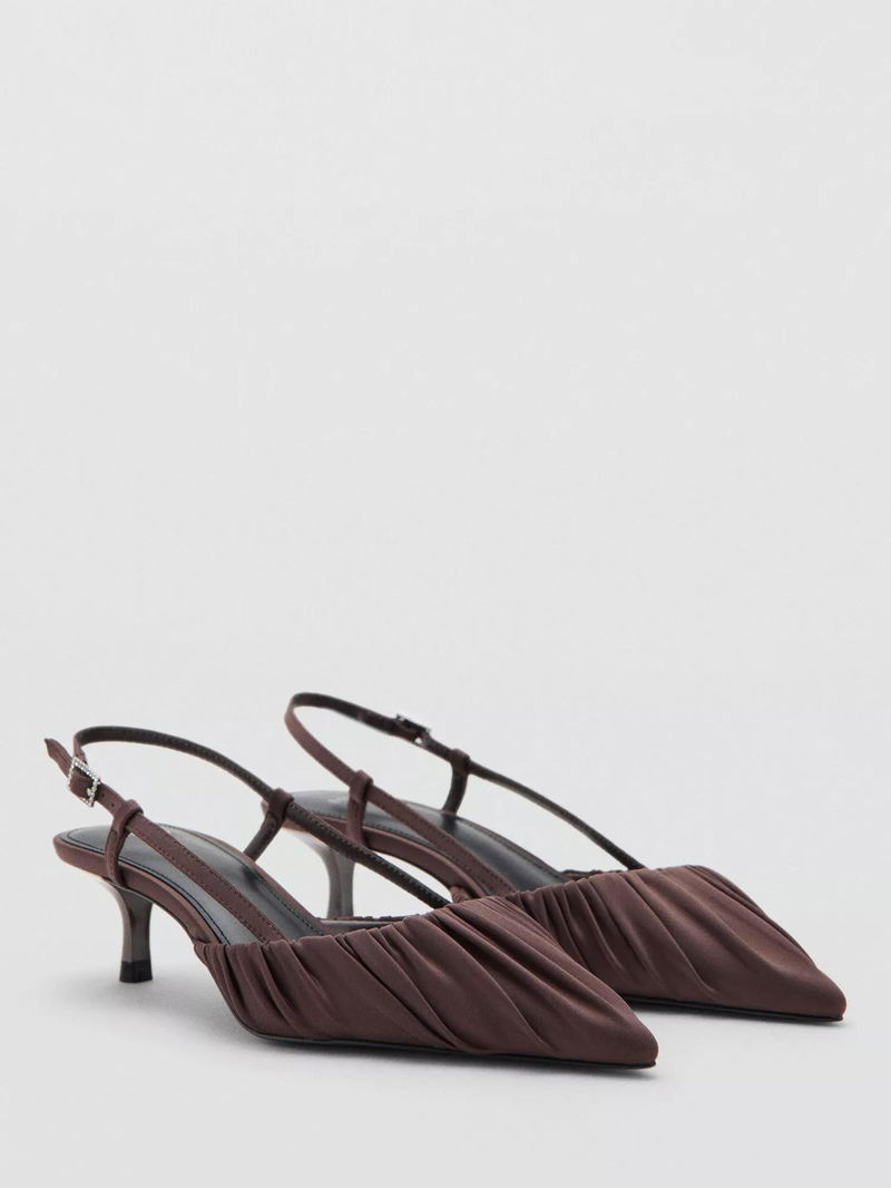 Dobla Ruched Kitten Heel Slingback Sandals, Dark Brown
