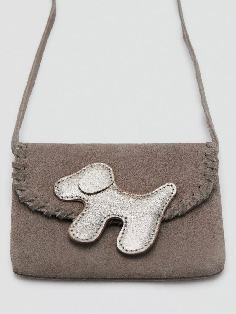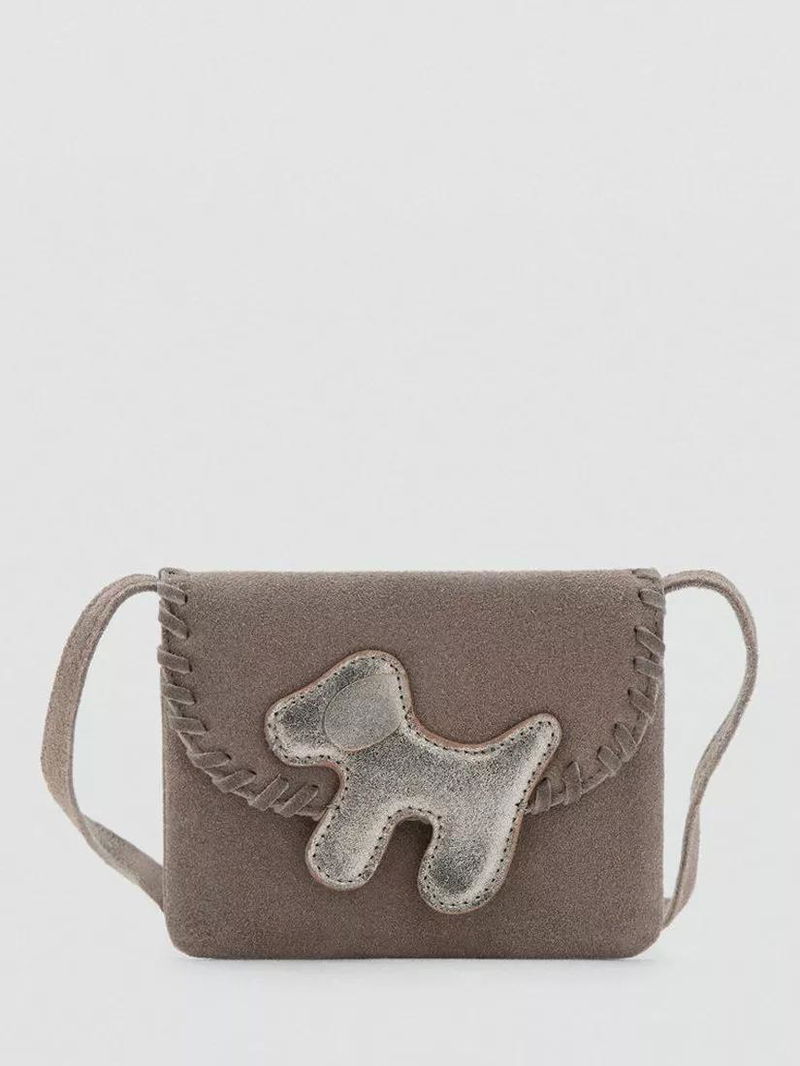 Doggy Suede Crossbody Bag, Taupe