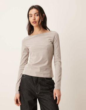 Drape Neck Long Sleeve Top In Chocolate