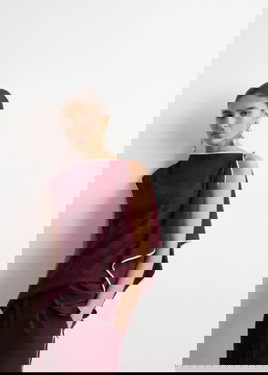 Asymmetric design. Shaved design. Boat neck. Short sleeve. Slip-on. Total look.