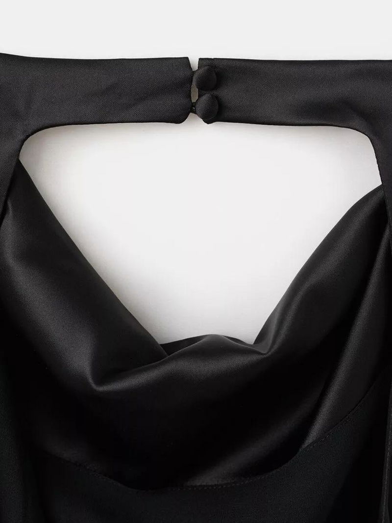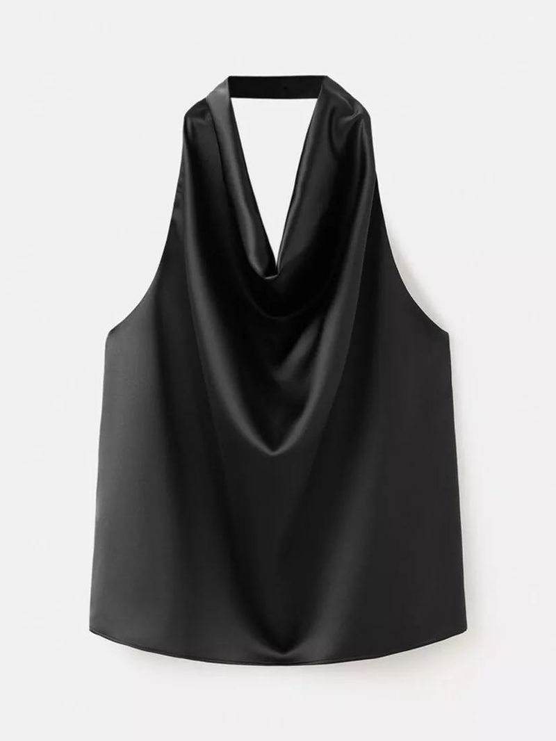 Draped Cowl Halterneck Top, Black