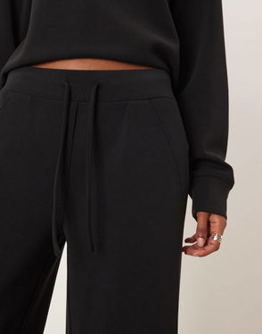 Stretch fabric. Long design. Straight Design. Jogger design. Mid-rise. Elasticated waistband. Adjustable drawstring. Two side pockets. No Fastening. Total look. Available Plus.