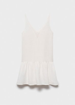 100% cotton fabric. Denim-style cotton fabric. Embroidered fabric. Flowered embroidery. Round neck. Sleeveless. Gathered detail on the front. Back closure. Button up. Frog with elastic ends. Set.