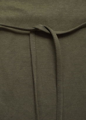 Pleated fabric, Rounded neck, Puffed short sleeve, Elastic waist, Teardrop fastening at back.