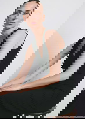 This striking midi dress has everything you need for a stand out look. With an Evasé design, asymmetrical neckline and a metal buckle strap at the shoulder. The gathered detail at the waist and asymmetric hem makes for a simple yet eye-catching style.