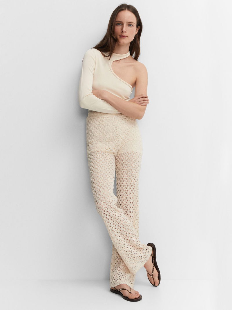 Tailored to flatter your profile, this pair of crochet trousers from Mango sit naturally on the hips and are cut to a straight shape. Made with frequent wear in mind, they are longer in length and rise above the rest with their textured finish.