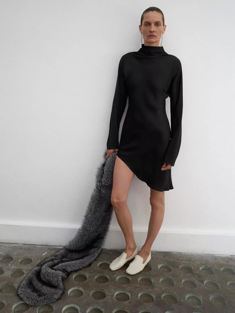 Elisa Asymmetric Satin Dress, Black