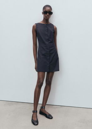 A fuss-free choice thanks to the shift cut, this thigh-grazing dress from Mango is carved out with a boxy square neck, straps and pinstripes. With a button front, welt pockets and a string tie belt, it's ideal for occasions that call for a smarter touch.