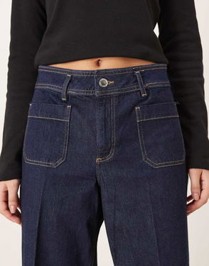 Elise Cotton Mix Pleat Front Wide Leg Jean In Dark Blue