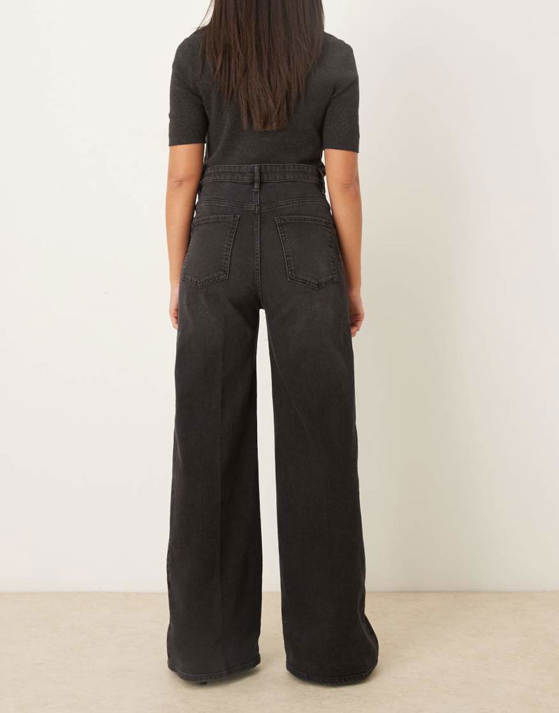 Elise Cotton Mix Pleat Front Wide Leg Jean In Grey