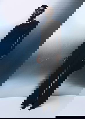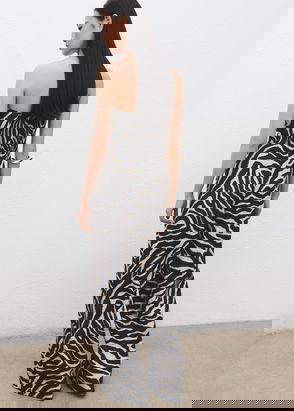Long design, Sequin panel, Thin double crossover straps on the back section, V-neck, Zip fastening on the back section.