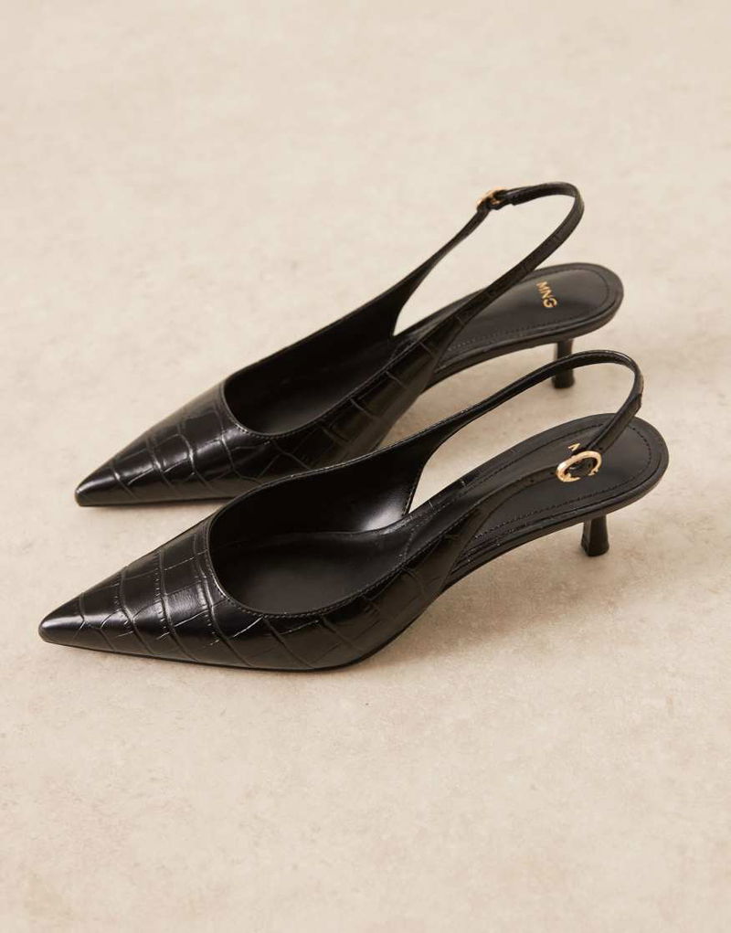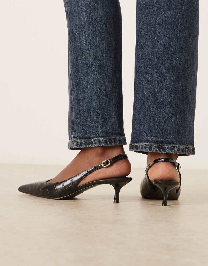 Faux Croc Textured Sling Back Kitten Heel In Black
