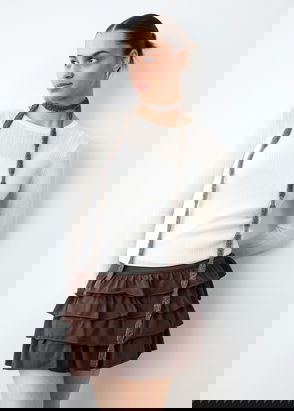 Faux fur fabric, Long strap, Cord fastening, 7.48x1.57x6.3in (LengthxHeightxWidth)