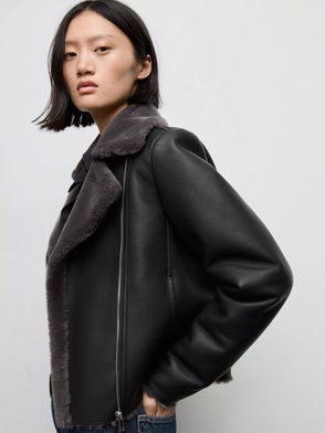 Faux fur fabric, Biker design, Short design, V-neck, Long sleeve, Zip fastening, Side zip pockets, Inner lining, Side length 12.8 in Back length 21.57 in.