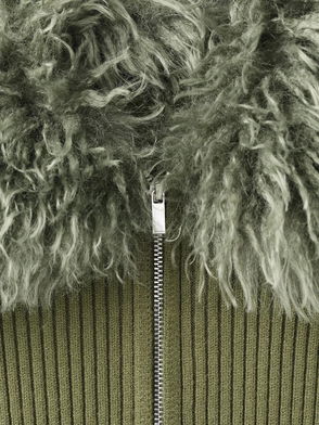 Faux Fur Collar Cardigan In Black