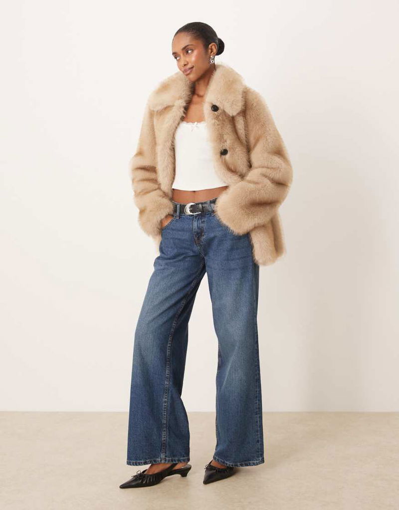 Faux Fur Jacket In Light Beige