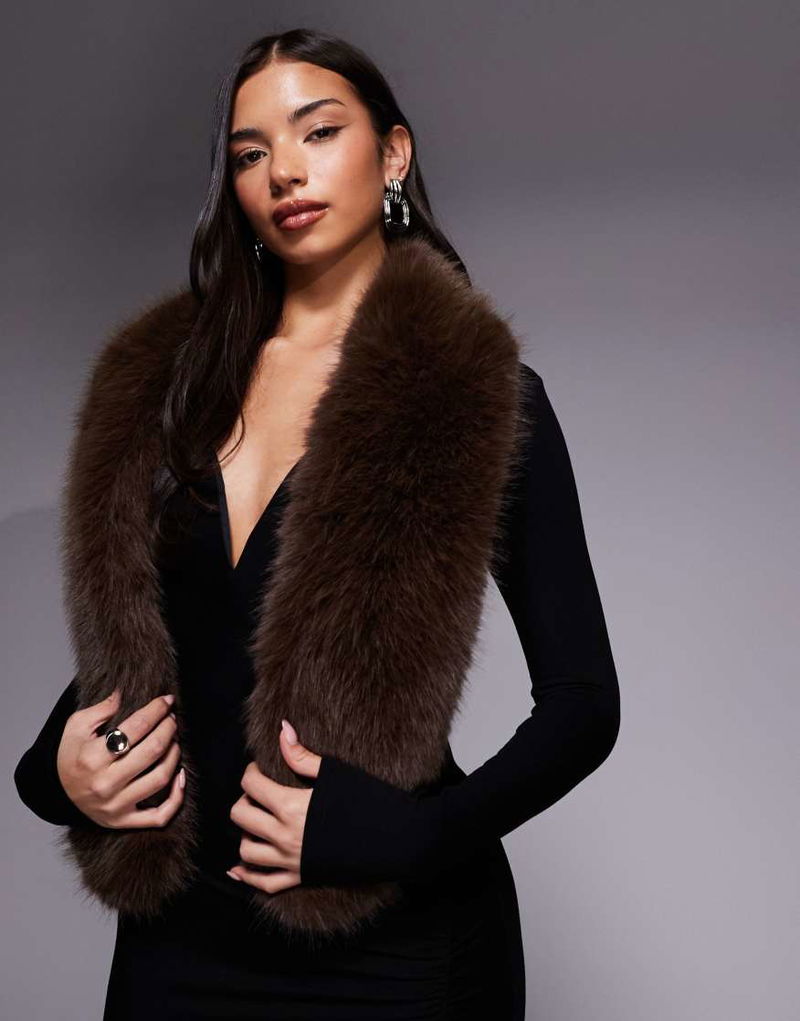 Faux Fur Neck Scarf In Brown