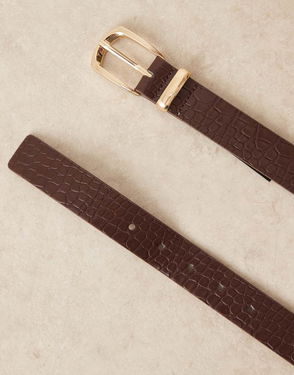Faux Leather Belt With Gold Buckle In Black