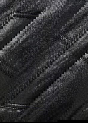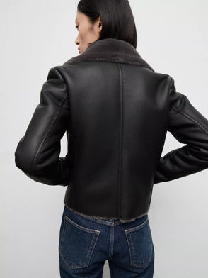 Faux leather, Wide design, Lapel-collar, Faux shearling collar, Long sleeve, Two pockets with flaps on the front, Button fastening on the front section, Inner lining.