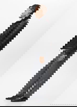 Casual line, Short design, Faux leather, One press stud fastening, Long sleeves with zipped cuff, Zip fastening, Zipped pockets, Inner lining, Back length 24.29 in.