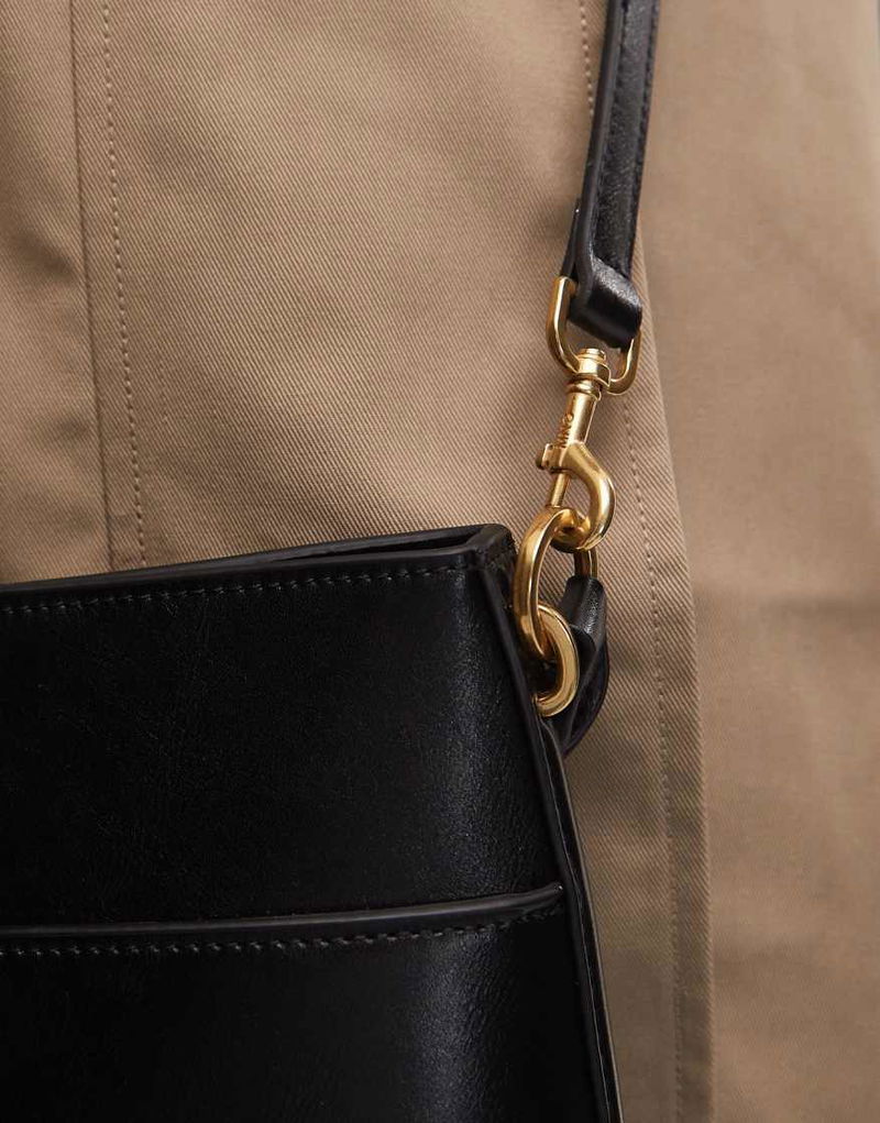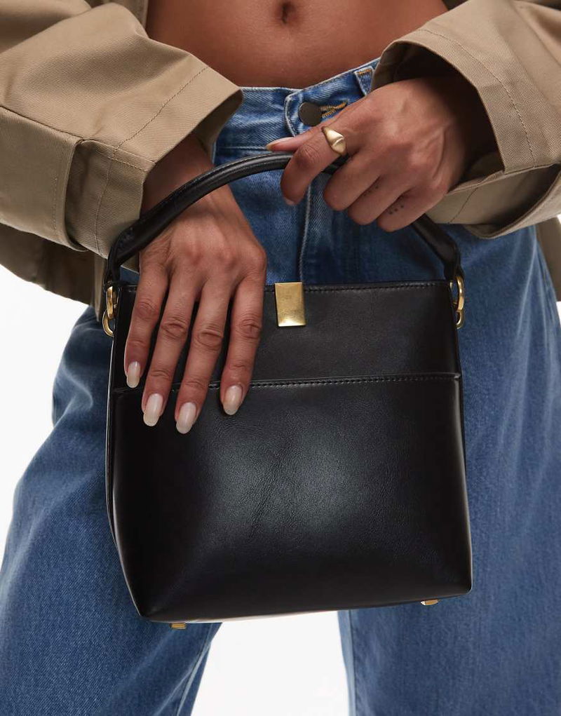 Faux Leather Bucket Bag With Hardware Detail In Black