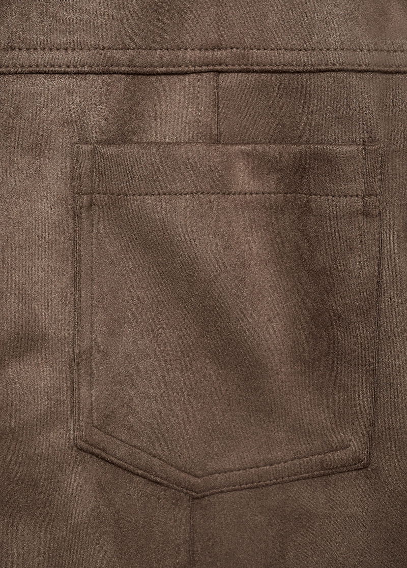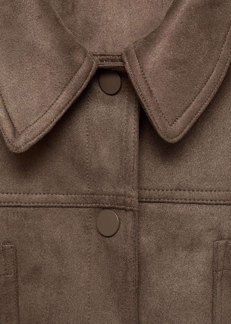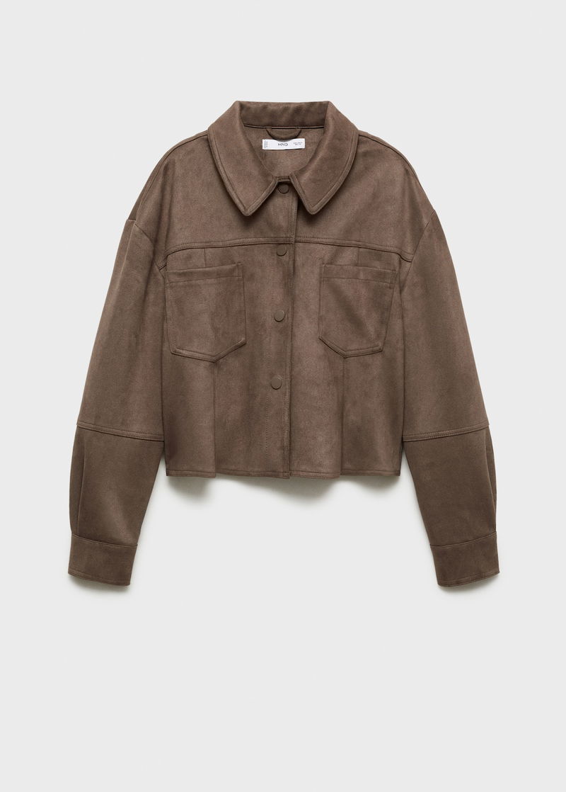 Faux leather. Oversized design. Short design. Shirt collar. Long sleeves with buttoned cuffs. Two patch pockets on the chest. Button fastening at the front. Total look. Straight design. Notched lapel collar. Long sleeves. Buttoned cuffs. Two patch pockets at the front. Without inner lining. Seam detail.