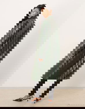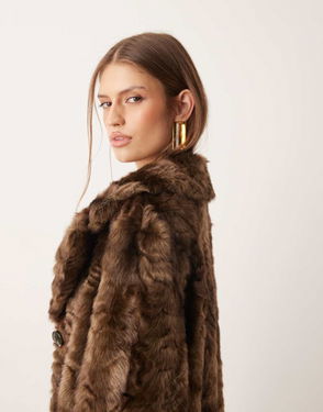 With a suede-effect, this straight design features a shearling shirt collar and long sleeves. It has two side pockets and a front button closure. The interior lining is also shearling
