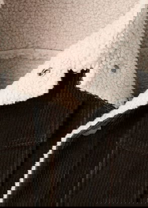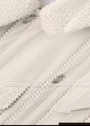 Regular fit, Denim style cotton fabric, Shirt-style collar, Faux shearling interior, Front zip closure, Faded dark wash, Backstitched details, Two front pockets, Long sleeve with buttoned cuffs, Adjustable side straps with button, Straight hem.