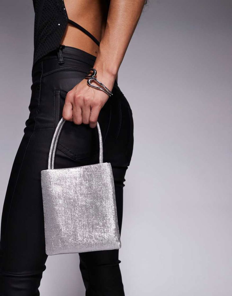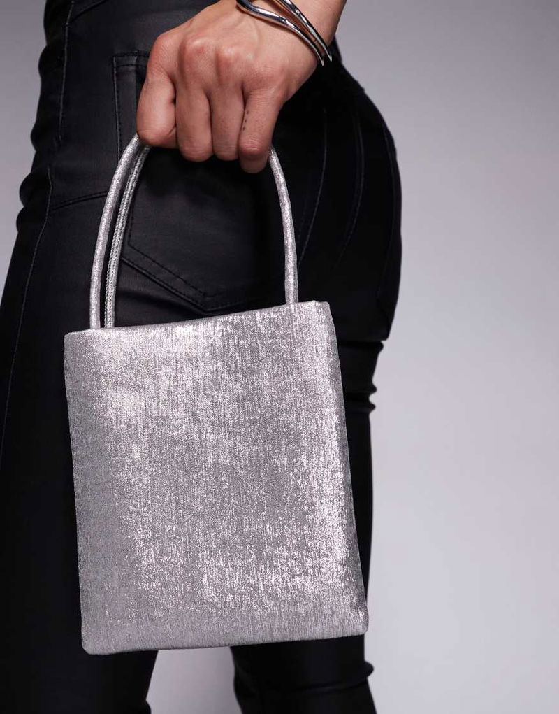 Featuring Kaia Gerber Metalic Textured Satin Bag In Silver