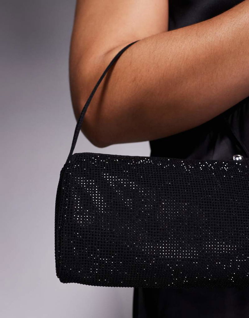 Featuring Kaia Gerber Micro Diamante Handbag In Black
