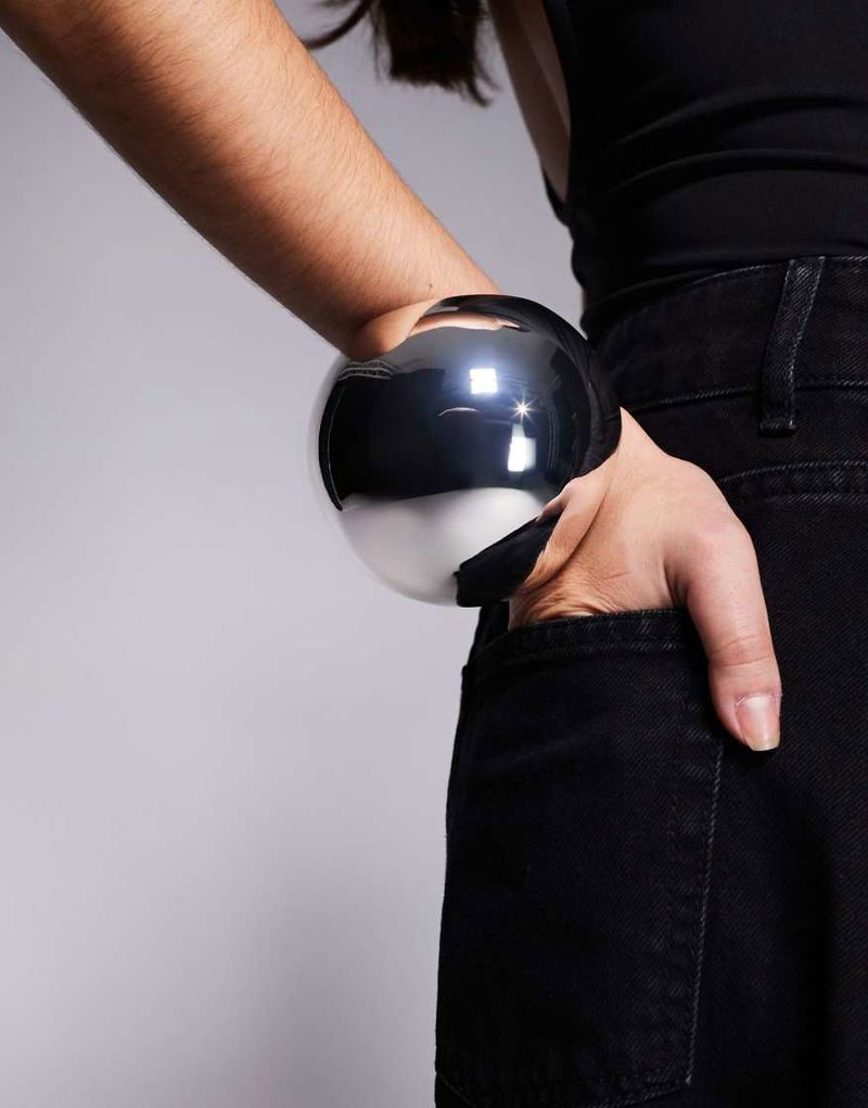 Featuring Kaia Gerber Oversized Dome Bracelet In Silver