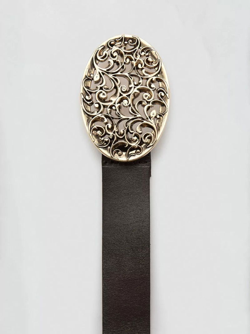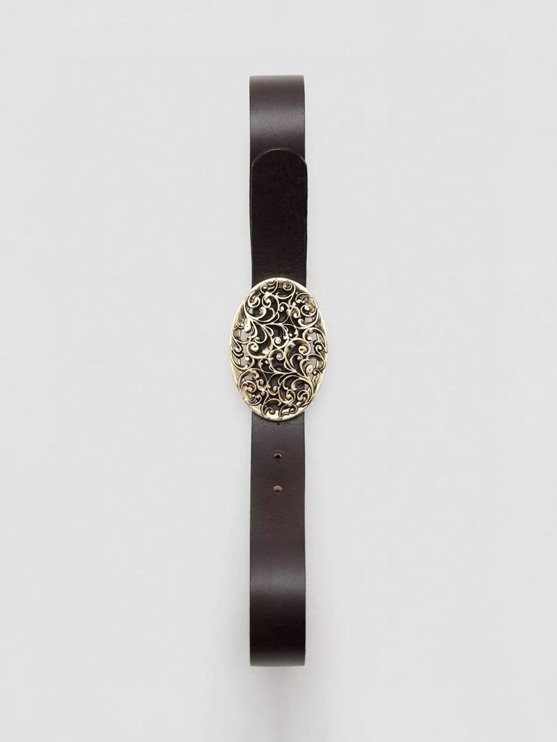 Filigree Buckle Pure Leather Belt, Chocolate