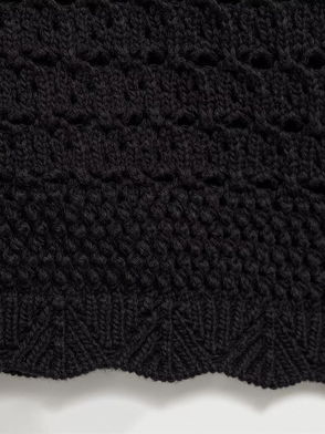 Flowy fabric, V-neck, Cable knit design, Button up, Long sleeve, Side length 13.19 in Back length 25.2 in.