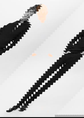 100% cotton fabric. Straight silhouette. Ribbed design. Round neck. Long sleeves with elastic cuffs. The model is 185 cm tall and is wearing a size M.