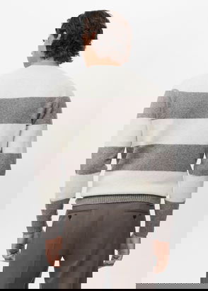 Casual line, Wool mix fabric, Speckled jacquard, Rounded neck, Long sleeve, Cable knit finish, Back length 25.79 in.