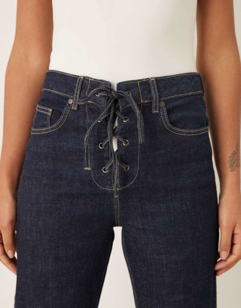 Flor 100% Cotton Tie Detail Straight Jean Co-ord In Indigo