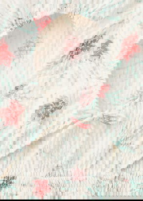 100% cotton fabric. Embroidered fabric. Embroidered floral details. Short design. Round neck. Thin straps. Without inner lining.