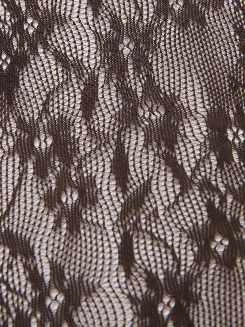 Floral Lace Tights, Dark Brown