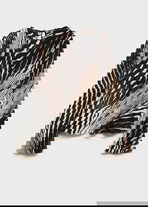 Flowy fabric, Floral print, Rounded neck, V-neck, Long puffed sleeves, Side length 13.86 in Back length 24.06 in.